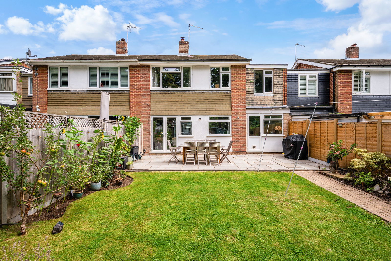 - Private, enclosed rear garden with lawn and patio area for alfresco dining