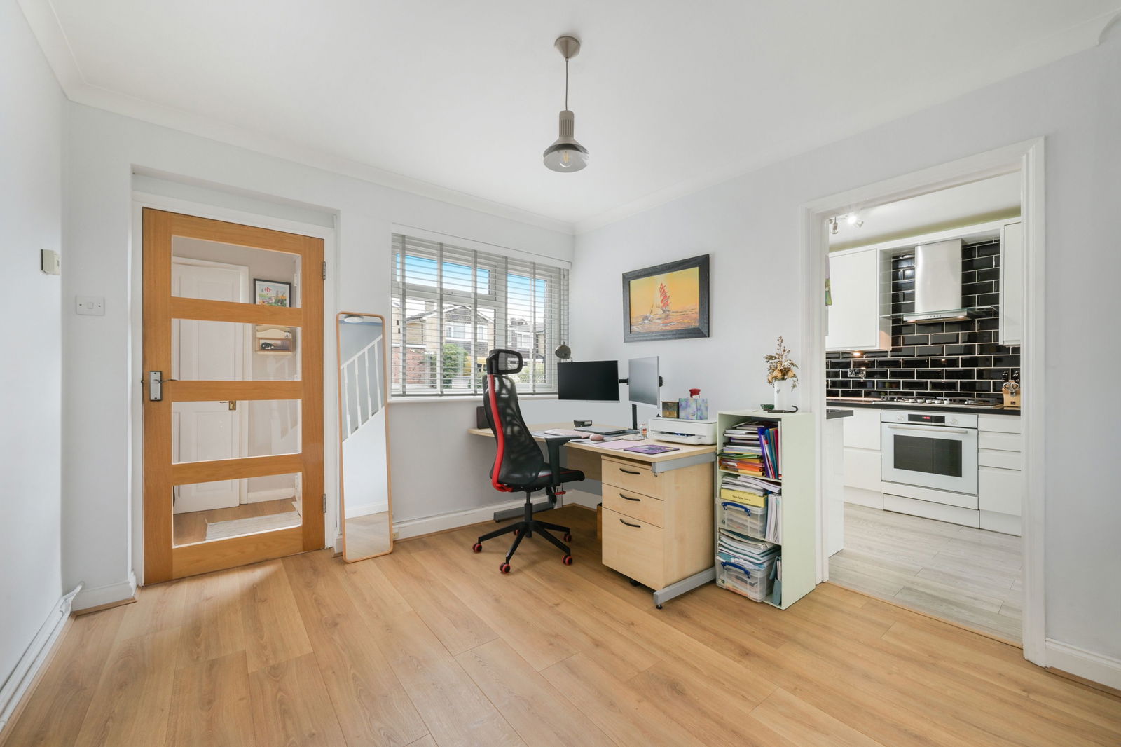 - Fully fitted kitchen with adjoining utility room and garden access