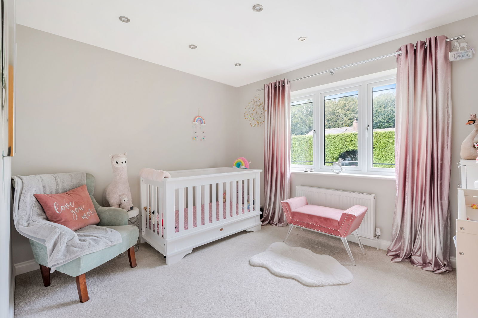 At the heart of the home sits the stunning open-plan kitchen and dining area. Featuring bespoke cabinetry, top-of-the-range NEFF appliances, and an impressive central island, it’s the perfect space for gathering with family and friends. A separate utility room adds practicality, while the spacious dining area overlooks the garden.