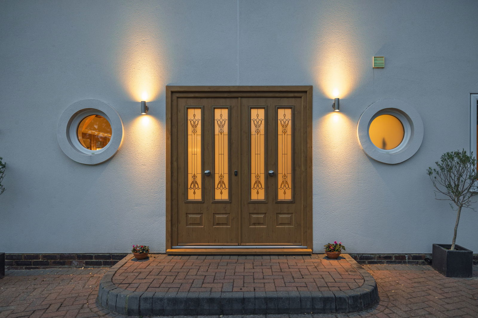 As you arrive, electric gates glide open to reveal a sweeping driveway with ample space for parking and turning.