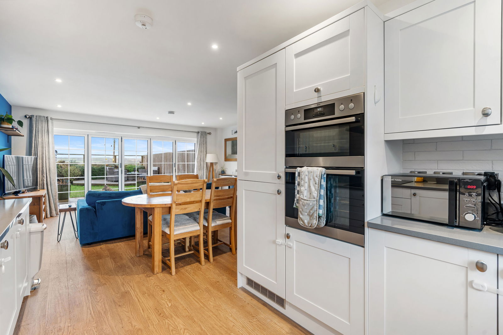 - SUPERB 8M OPEN PLAN LIVING ROOM INCORPORATING HIGH QUALITY KITCHEN WITH STONE WORKTOPS AND BUILT IN APPLIANCES