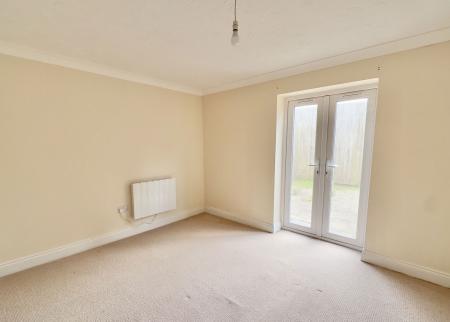 BEDROOM ONE - 3.57m x 3.26m - French doors providing access to rear decked Patio, heat store panel heater with thermostatic heating control, three double power points, centre ceiling light.
