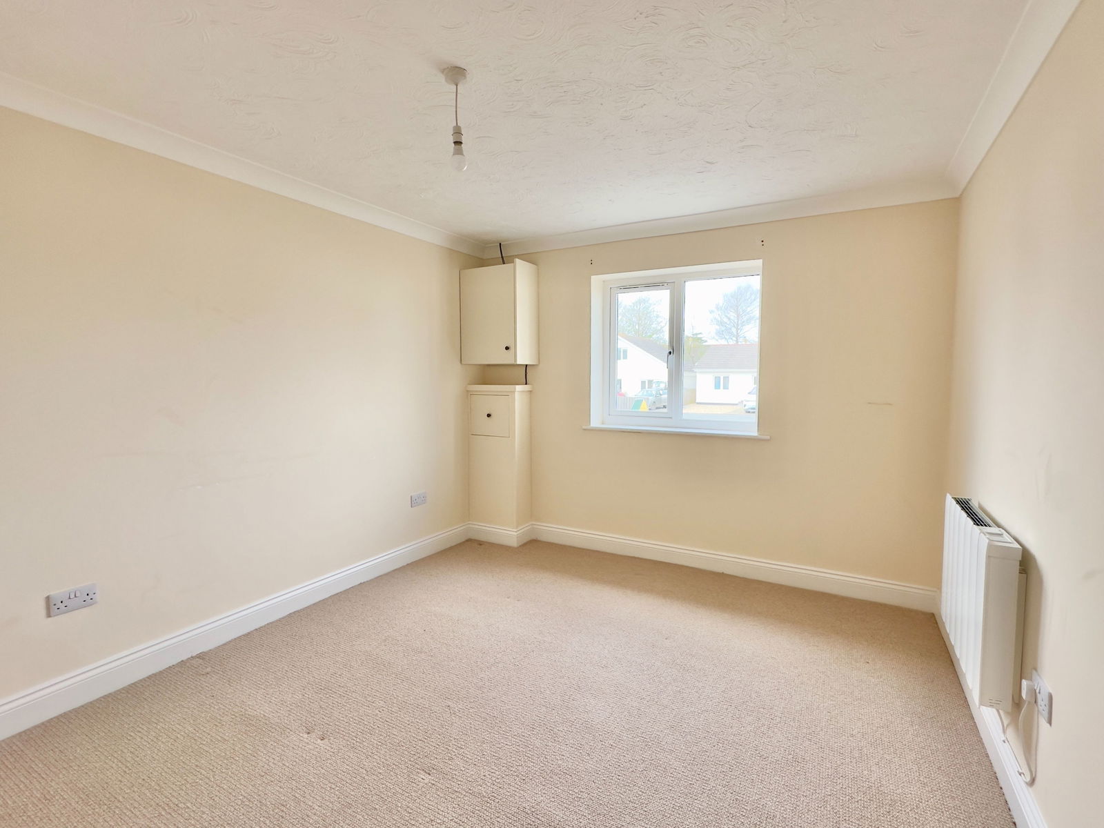 BEDROOM TWO - 3.38m x 3.09m - Single aspect room with heat store panel heater and thermostatic heating control three double power points, centre ceiling light, cupboard housing solace solar PV box, electricity consumer unit.