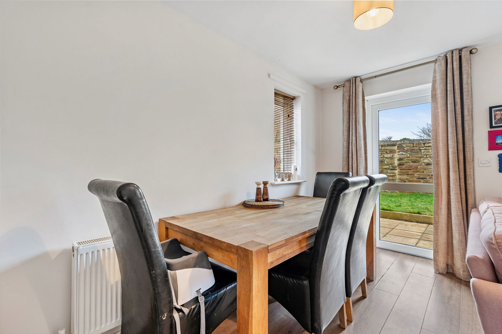Double glazed window in UPVC frame to rear and side together with double glazed door in UPVC frame to garden, two radiators.