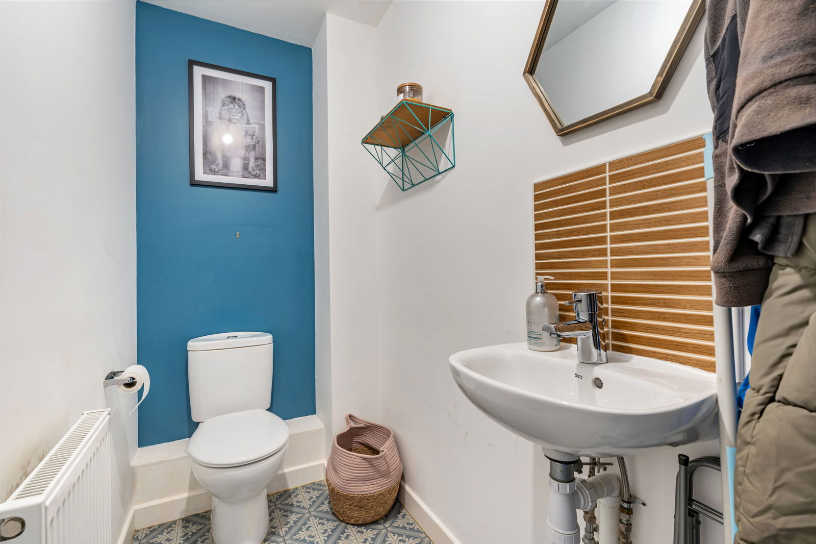 Low flush WC, wash hand basin, radiator, extractor fan.