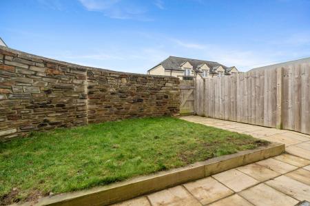 There is an enclosed garden at the rear with patio and lawn, stone wall boundary with gated rear access.