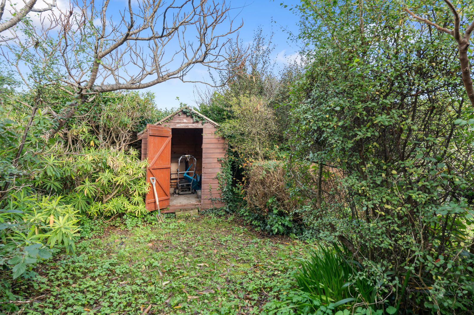 Read garden laid lawn with surrounding hedge and fence boundary and outside tap facility. There is a range of trees/flower/shrubs and a part hedge division leads into a further rear garden area with USEFUL STORAGE SHED.