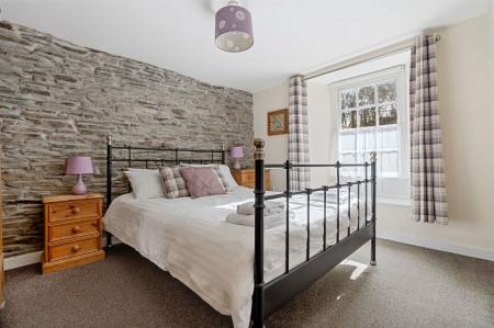 Single aspect room with sash window overlooking front elevation, deep window seat, exposed feature stone wall. Central heating radiator, centre ceiling light, power points, door to: