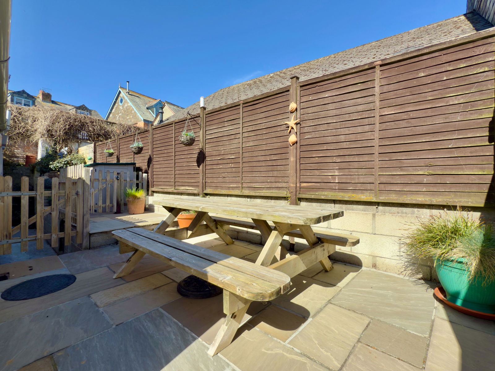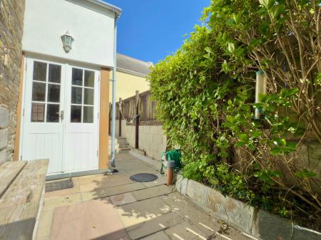 To the rear a gate provides access which leads to the kitchen. Path extends via steps to: