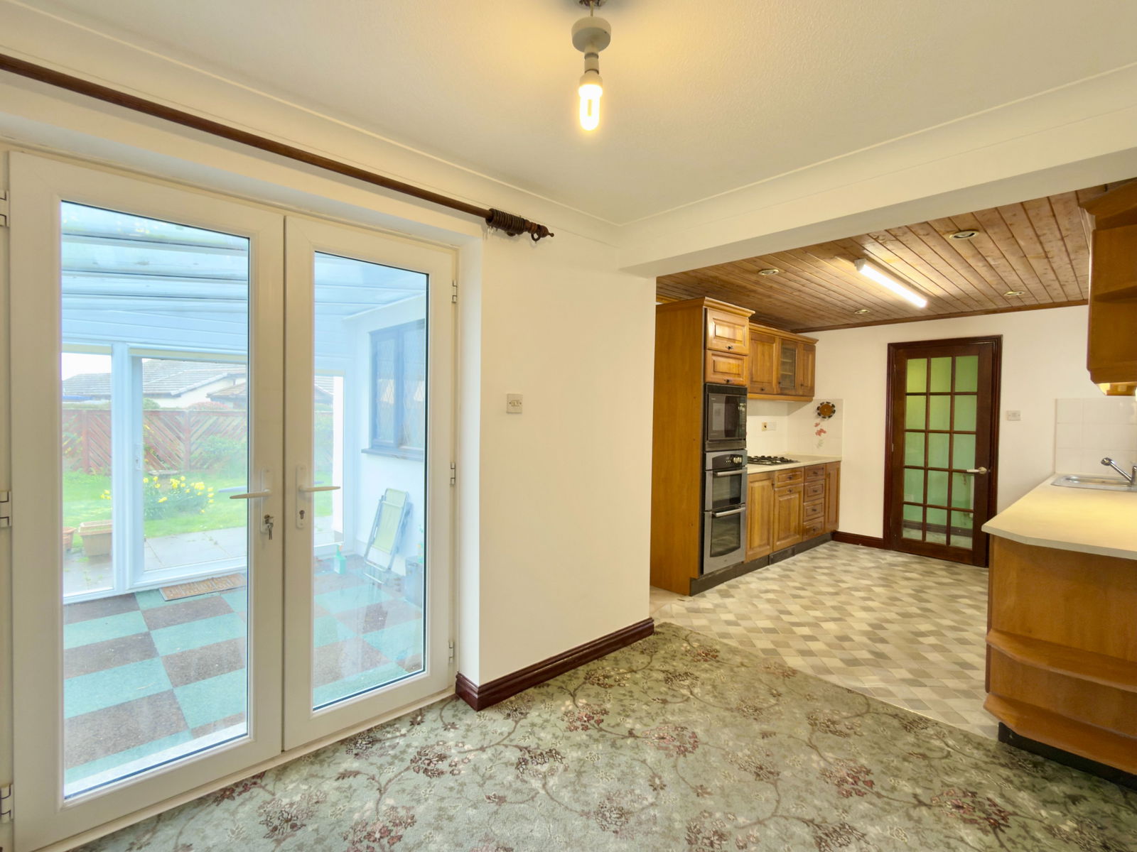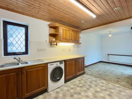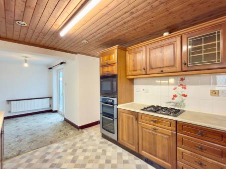 Double glazed French doors in UPVC frame opening to the Conservatory, together with double glazed window in UPVC frame to side. Fitted base cupboards with worktops over and wall cupboards above, integral double oven, microwave and four ring gas hob, one and a half bowl stainless steel sink unit, space and plumbing for washing machine, space and power for fridge, radiator.
