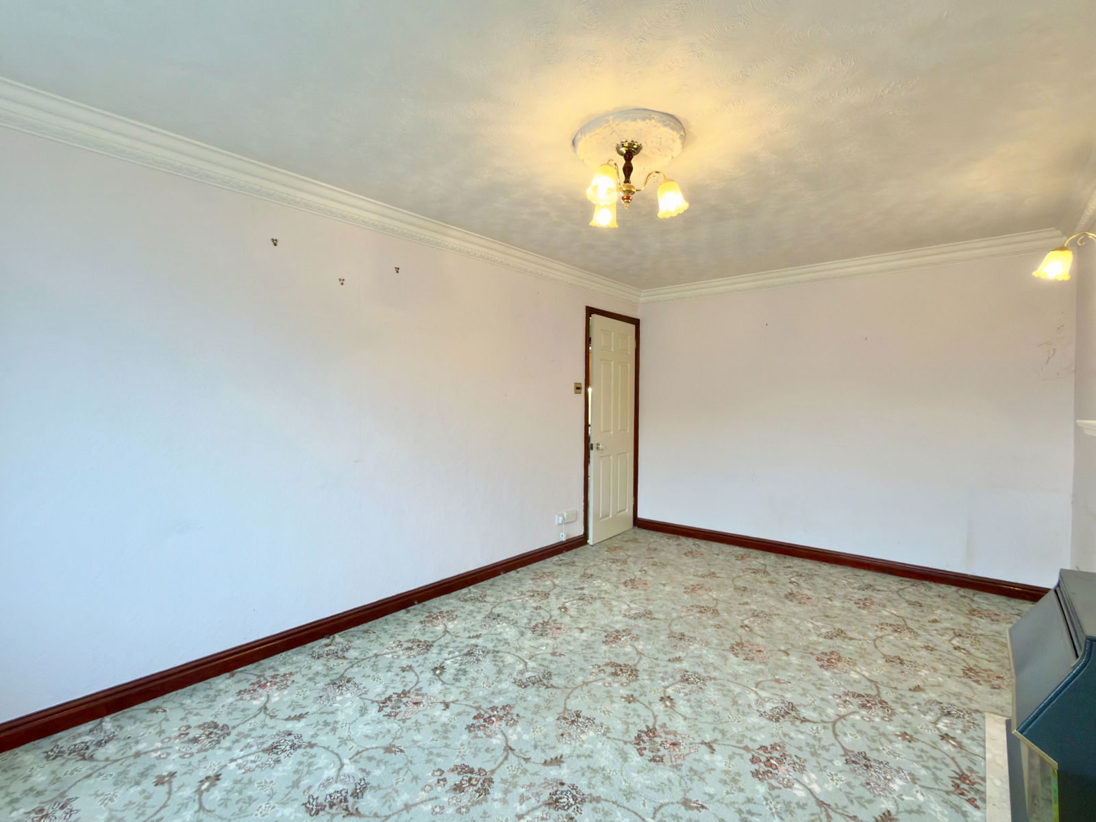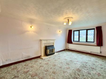 Double glazed window in UPVC frame to side, feature flame effect gas fire and surround with over mantel, radiator, TV point, two wall light points.