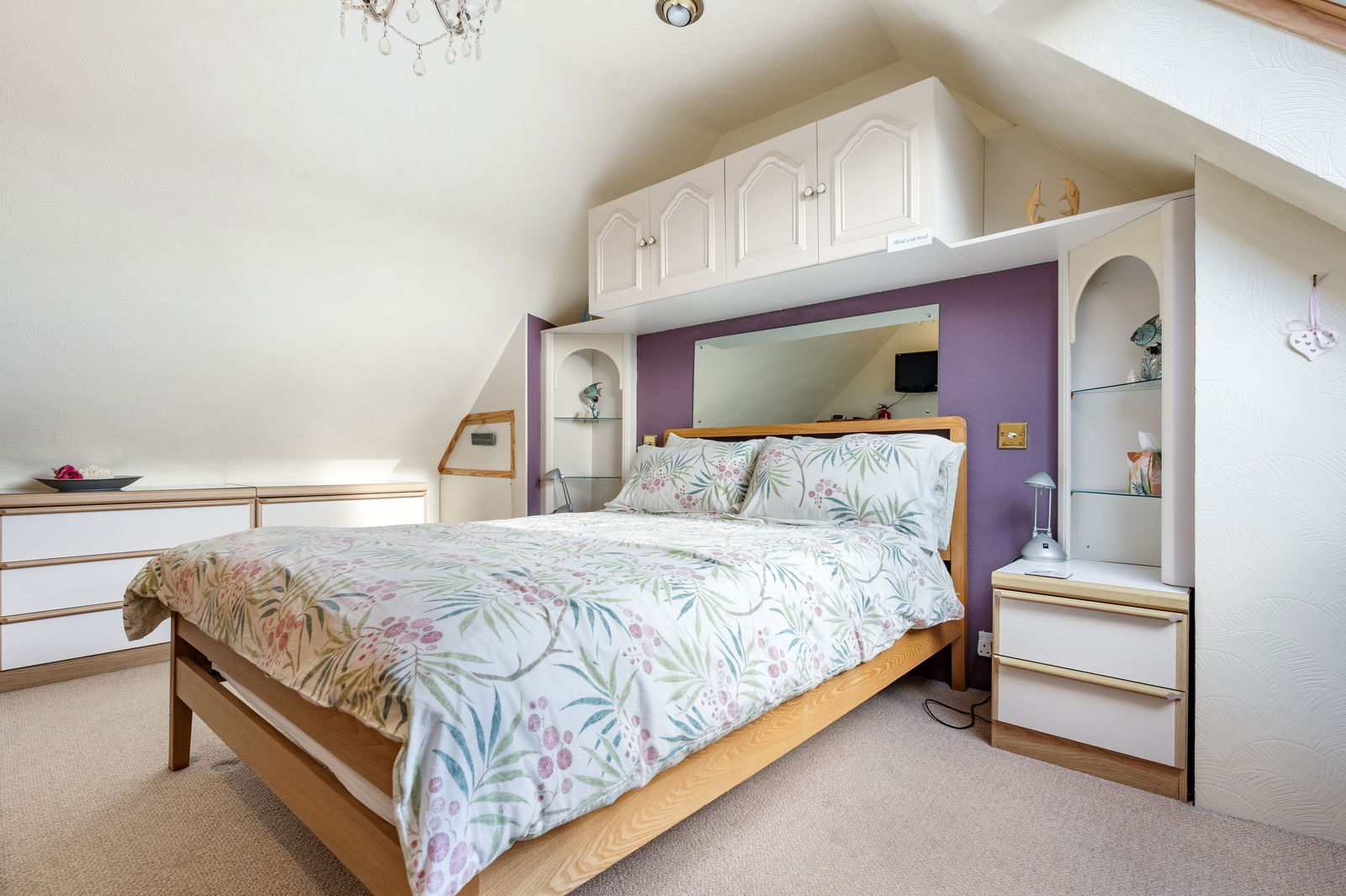 Velux window affording truly magnificent views to the Camel Estuary and surrounding countryside, Iron Bridge and the Monument. 3 recessed ceiling lights, centre ceiling light, ornate ceiling rose, television point, power points.