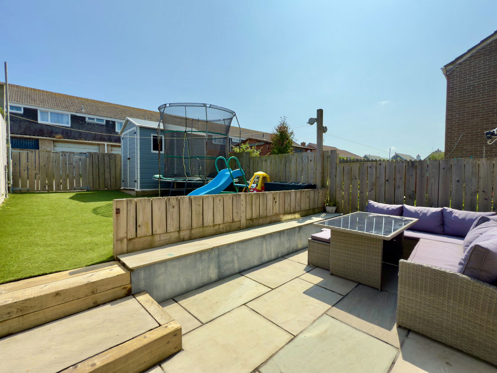 Private enclosed garden at the rear which enjoys a super south facing aspect with timber fence boundaries and garden shed. There is a small lawned garden at the front.