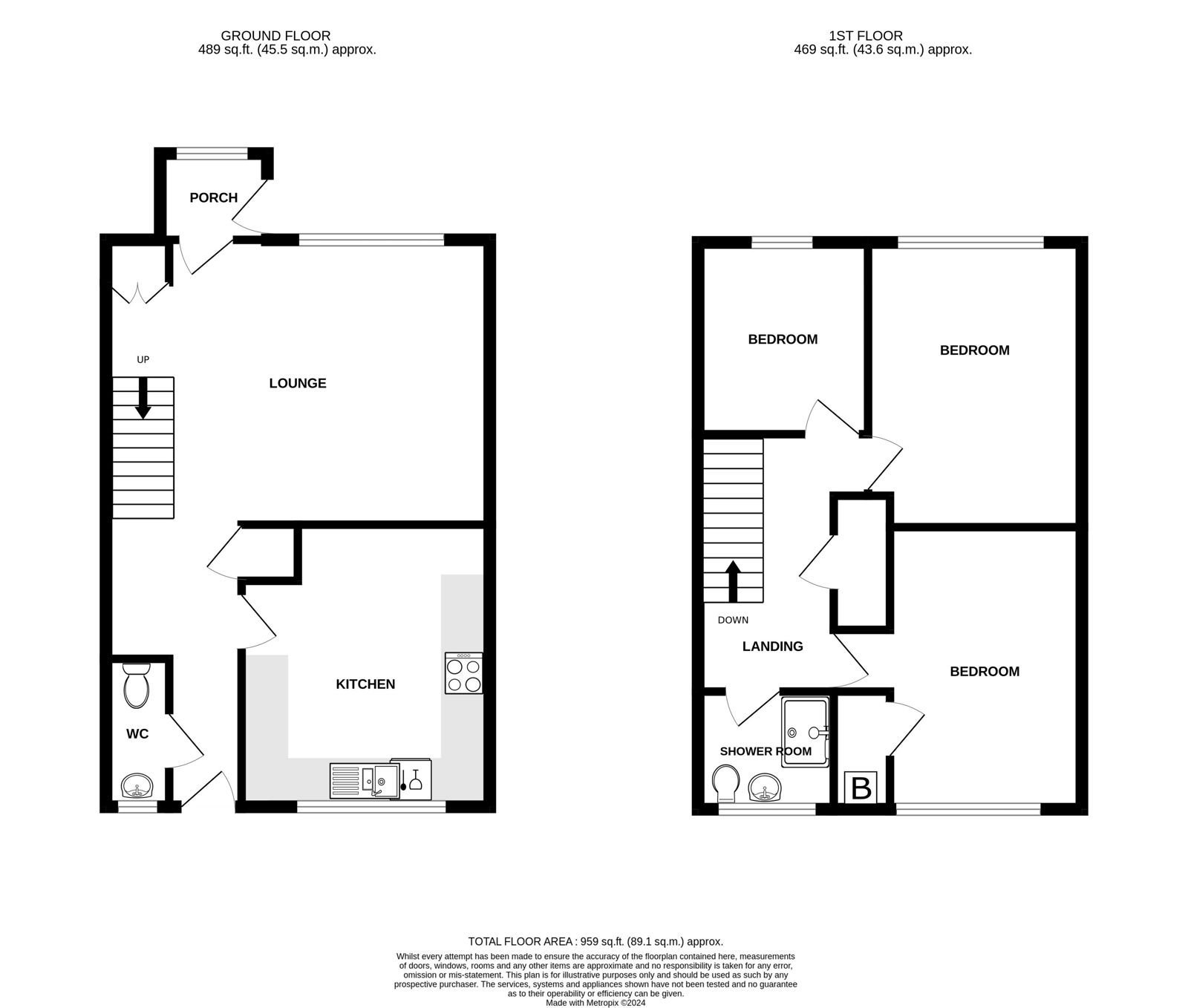 ACCOMMODATION WITH ALL MEASUREMENTS BEING APPROXIMATE:-