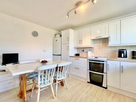 Single aspect room overlooking Rear Garden, comprehensive range of base and wall units with laminated worksurface over, one and a half bowl stainless steel single drainer sink, electric oven, space for tall fridge/freezer, space for washing machine, integrated dishwasher, central heating radiator, ceiling light, central heating timing controls.