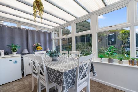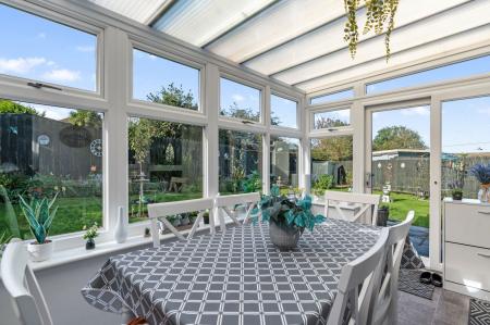 Double glazed on three sides in UPVC frames with sliding doors to garden, radiator.