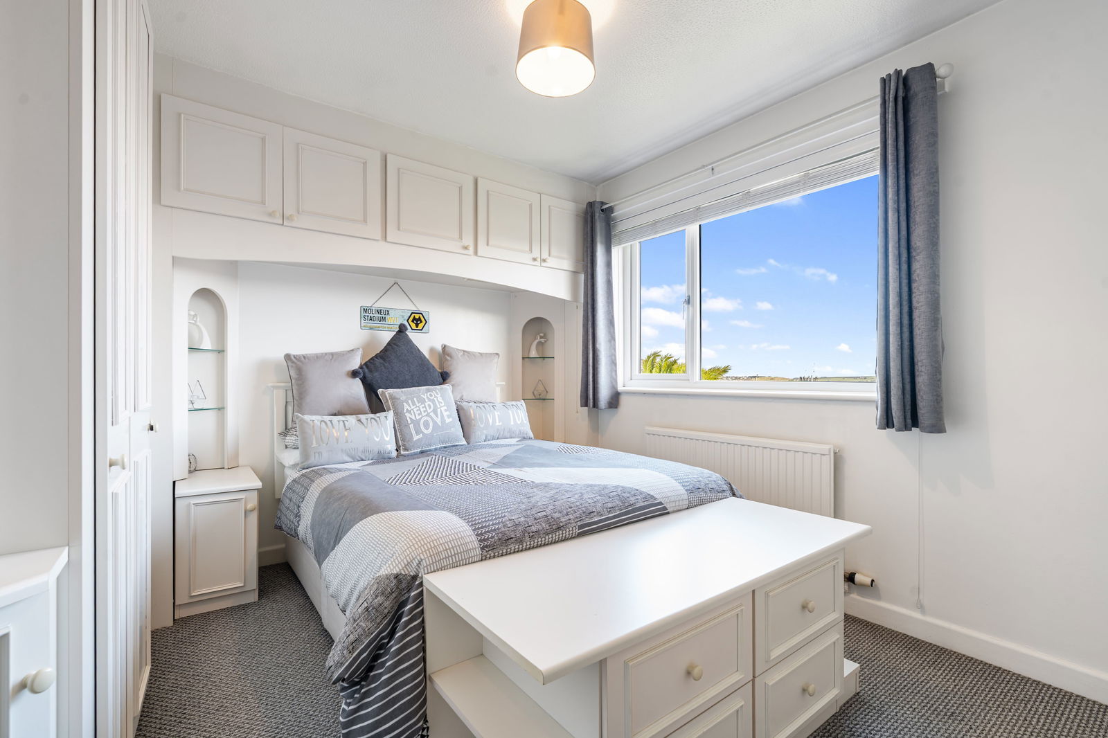Double glazed window in UPVC frame to front framing magnificent Estuary views, built in wardrobes and storage, radiator, large shelved storage cupboard.