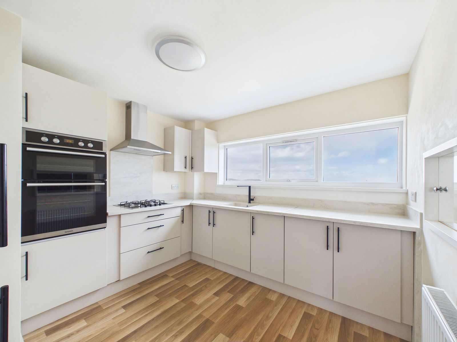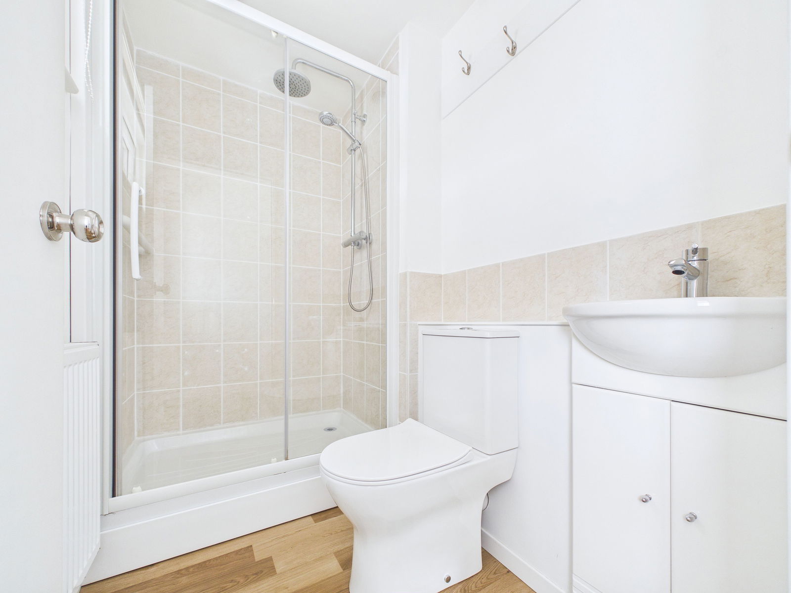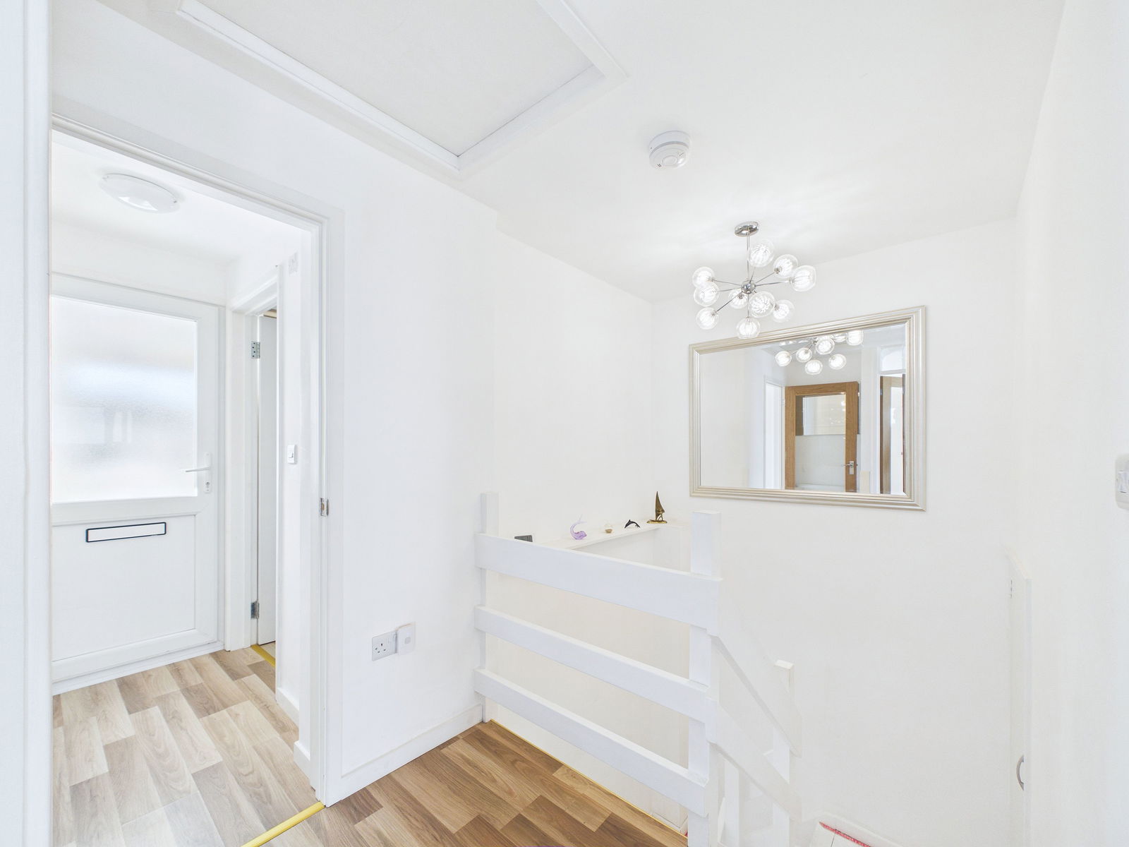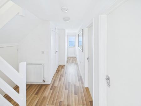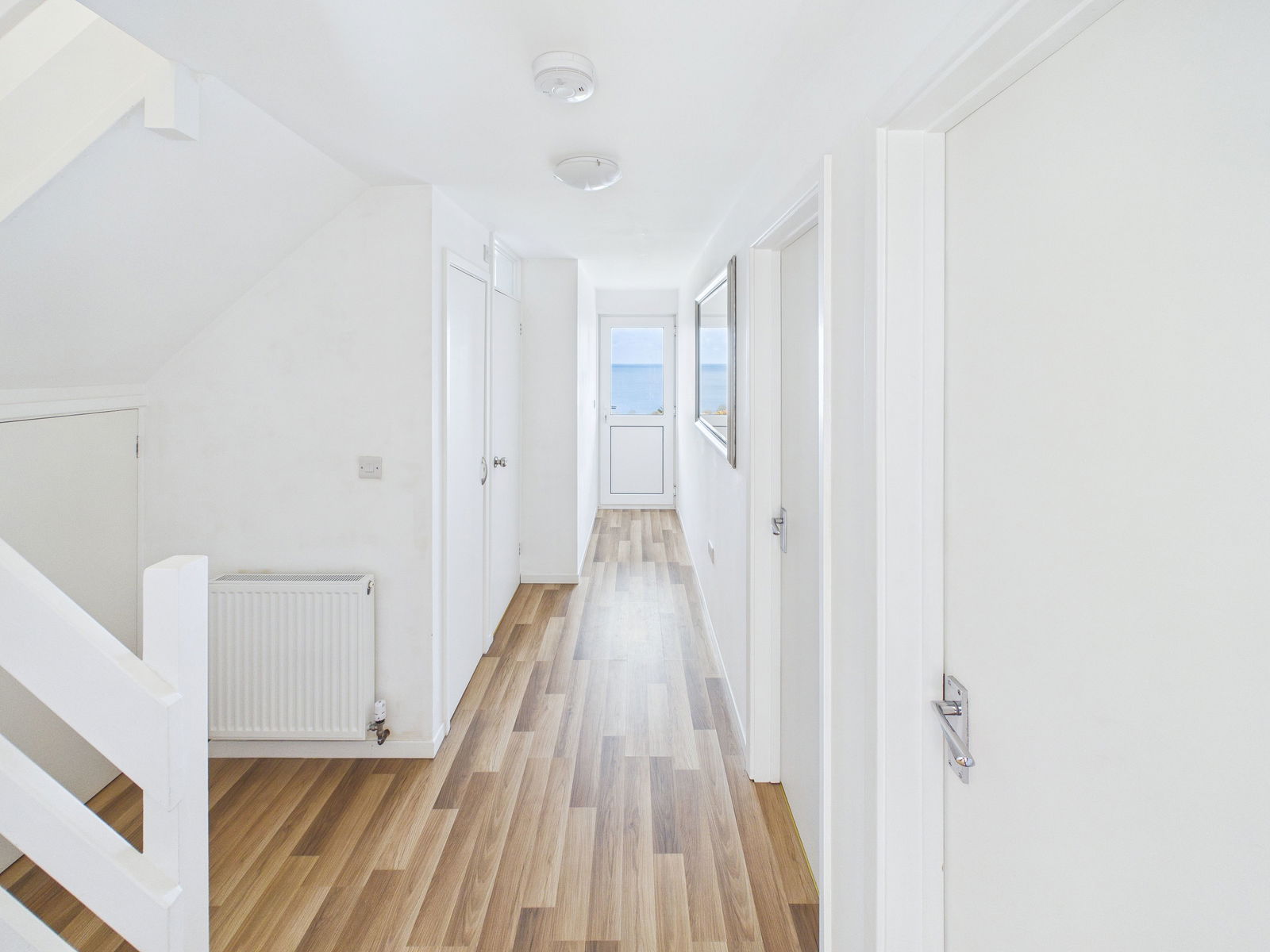 HALLWAY Wood effect flooring. Central heating radiator.