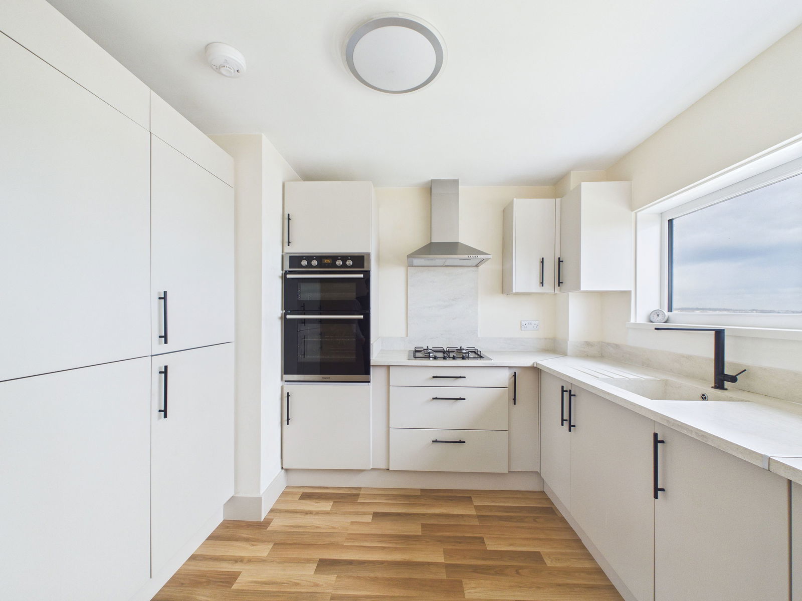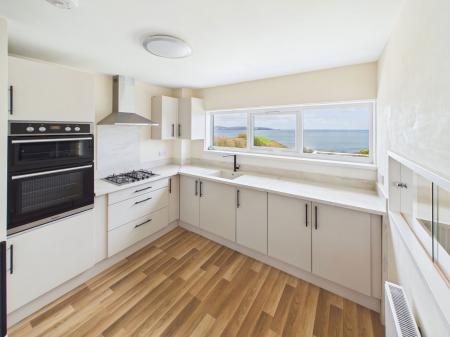 KITCHEN A recently fitted kitchen with integrated appliances. Range of wall base units and larder unit. uPVC double glazed window and the same magnificent sea views as the lounge.