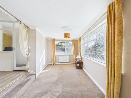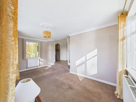 LOUNGE 5.0 m x 2.8 m max A bright and airy room with double aspect large double glazed windows overlooking the front gardens and driveway. Two radiators. TV point. Internal window looking into the dining area.