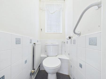 SEPARATE WC A white low-level WC with dual flush, double glazed window and radiator.