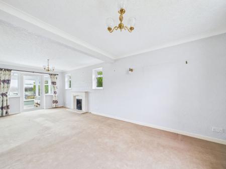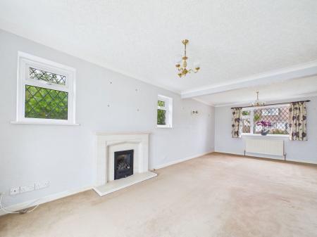 LOUNGE/DINER Stone fireplace with real flame gas fire. Two central heating radiator. Double aspect uPVC double glazing onto:-