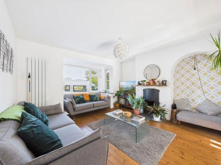 LOUNGE - 4.1m x 3.7m (13'5" x 12'1") Art deco fireplace, uPVC bay window. Natural wood flooring. Up right central heating radiator.