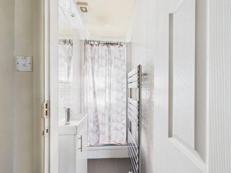 SHOWER ROOM Mains shower, vanity basin, heated towel rail and fully tiled.