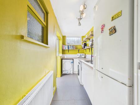 UTILITY ROOM - 4.4m x 1.6m (14'5" x 5'2") Continuation of same kitchen units with 1.5 bowl sink. Plumbing for washing machine and tumble dryer. uPVC window and door. Central heating radiator.