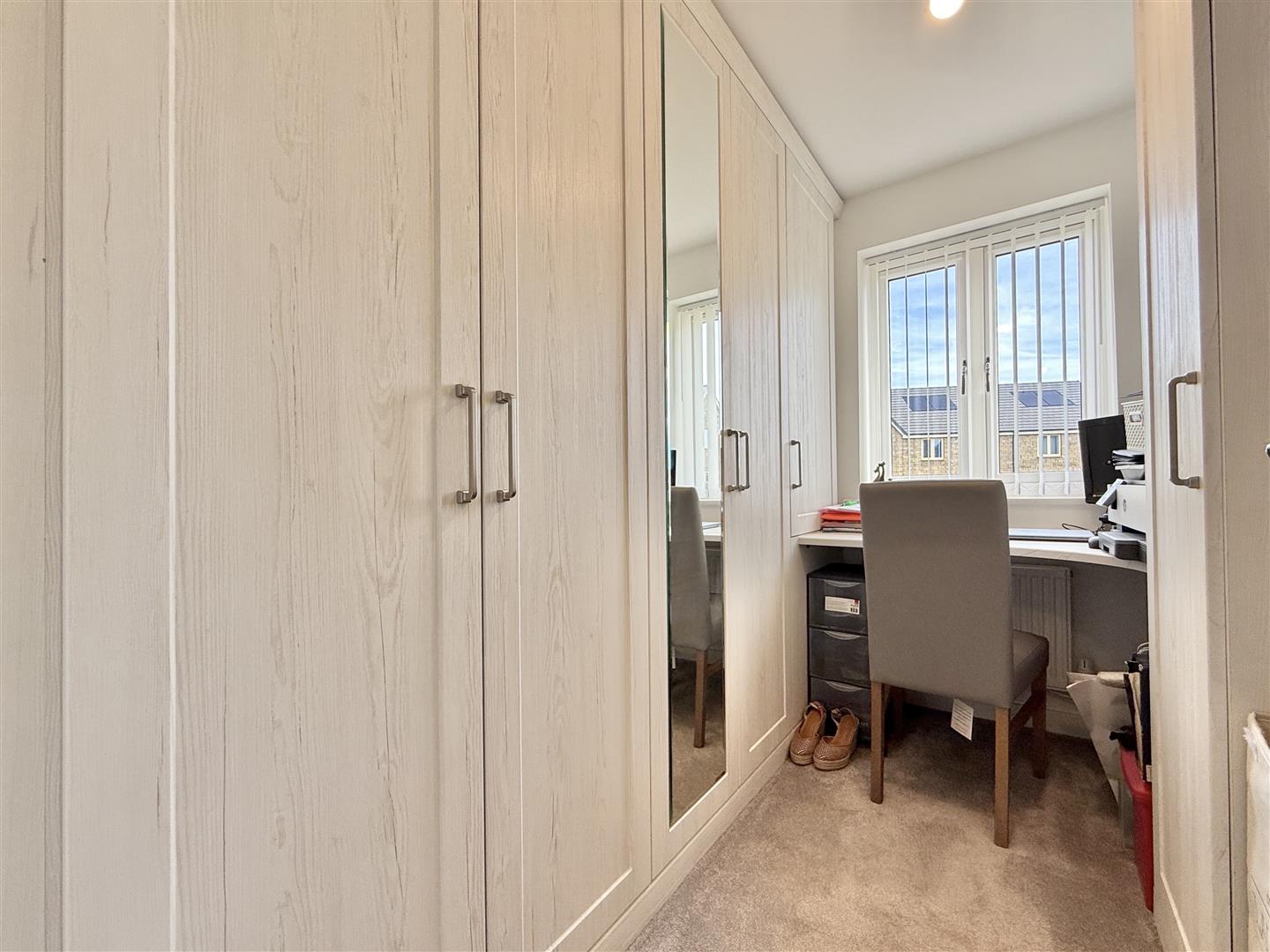 Upstairs, there are two generous double bedrooms, with the principal bedroom enjoying elevated open outlooks to the front, a Juliette balcony, and a smart ensuite shower room. The third bedroom is a compact single that the current owners have cleverly utilised as a dressing room and study, complete with high-quality fitted wardrobes. A modern family bathroom serves this floor, adding to the property's overall practicality and appeal.