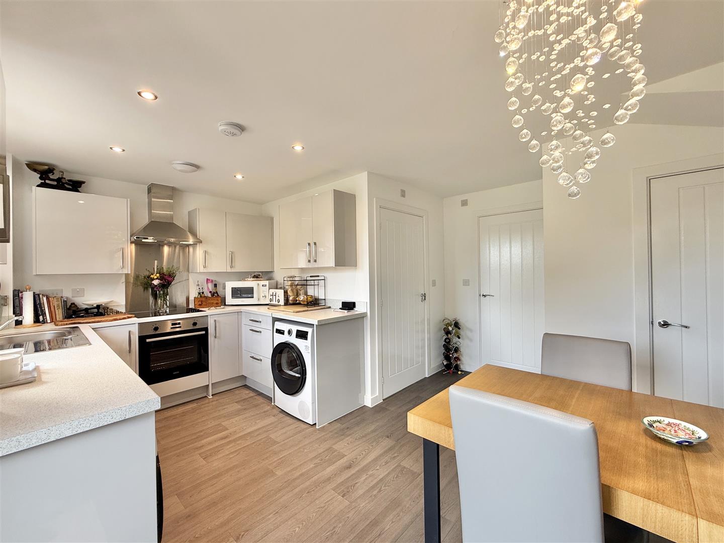 The ground floor features a welcoming entrance hall that leads into a light and spacious dual-aspect lounge with attractive open frontage views. To the rear, a stylish kitchen and dining space creates a wonderful social hub, with French doors opening directly to the garden-perfect for entertaining or relaxing with family and friends. A large ground floor WC sits just off the kitchen/diner, whilst also offering easy potential for conversion into a shower or wet room if desired.