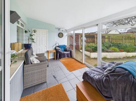 SUNROOM A well proportioned sun room providing an ideal additional sitting room. Featuring double aspect uPVC double glazed windows, a uPVC double glazed sliding patio door opening onto the rear garden and wall mounted lighting.