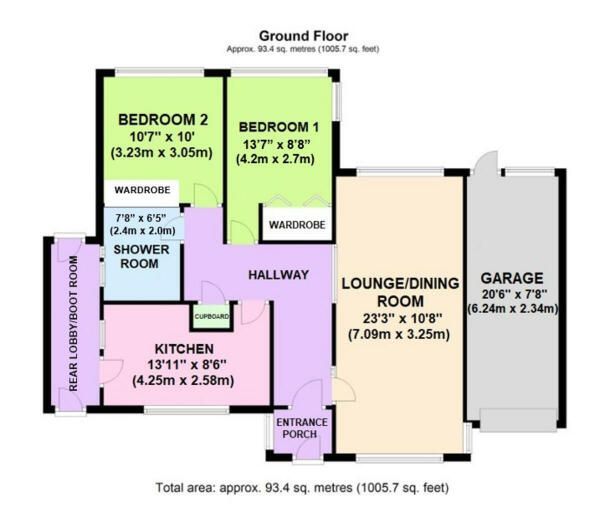 GARAGE 20’6” x 7’8” (6.24m x 2.34m) Electric door. Power and light. Gas and electric meters. Personal door to the rear garden.