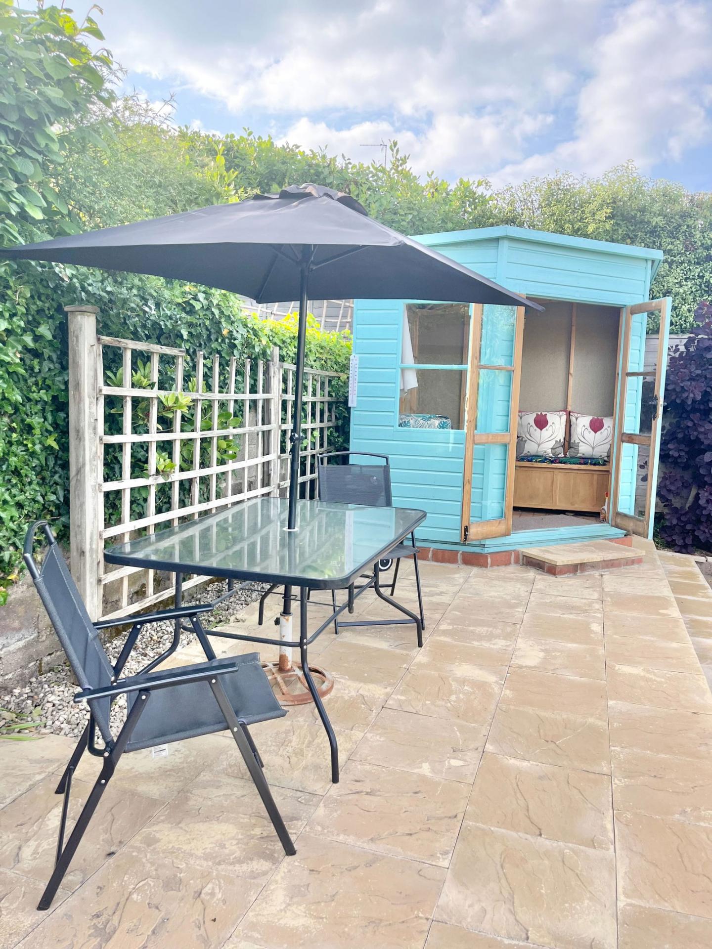 REAR GARDEN The rear garden is enclosed by wooden fencing and wall with privacy blocks and comprises of a central lawn with various surrounding borders. These include paved areas and gravelled beds planted with established plants and shrubs. A pathway leads to the raised TERRACE housing a WOODEN CHALET and providing ample space for garden furniture to sit and relax, enjoying the views towards the sea and Scadson woods. A further terrace leads around the side providing a good size storage area with access to the Garage.