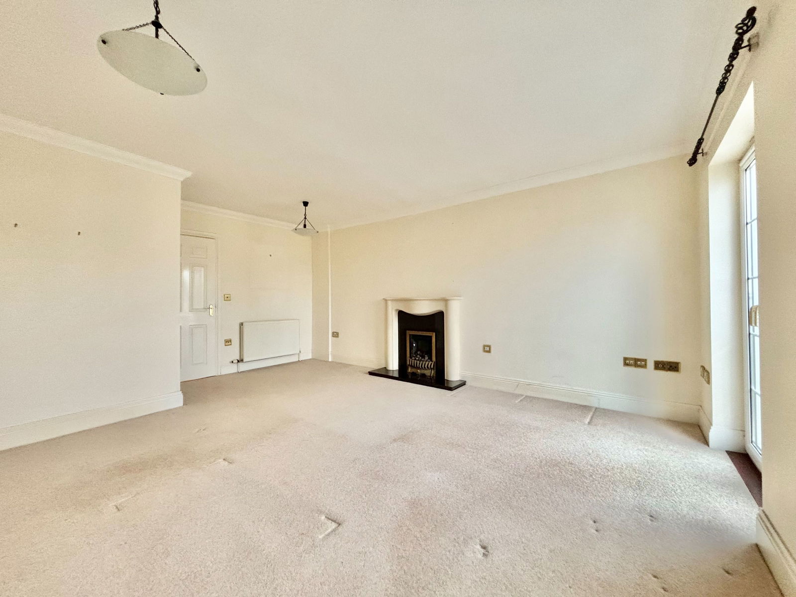 LOUNGE - 5.49m x 4.19m (18'0" x 13'9") A large living room to the front aspect of the property with superb countryside views, space for an abundance of furniture, a feature gas fireplace with granite hearth, TV and Internet points, UPVC double glazed window and tilt and turned doors opening to the Juliet balcony and a gas central heated radiator.