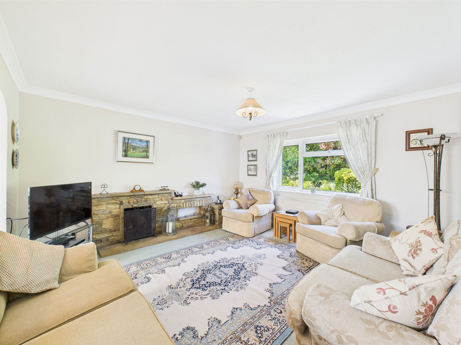 LOUNGE - 4.3m x 4.2m (14'1" x 13'9") Fireplace. uPVC double glazing. Sliding doors to:-