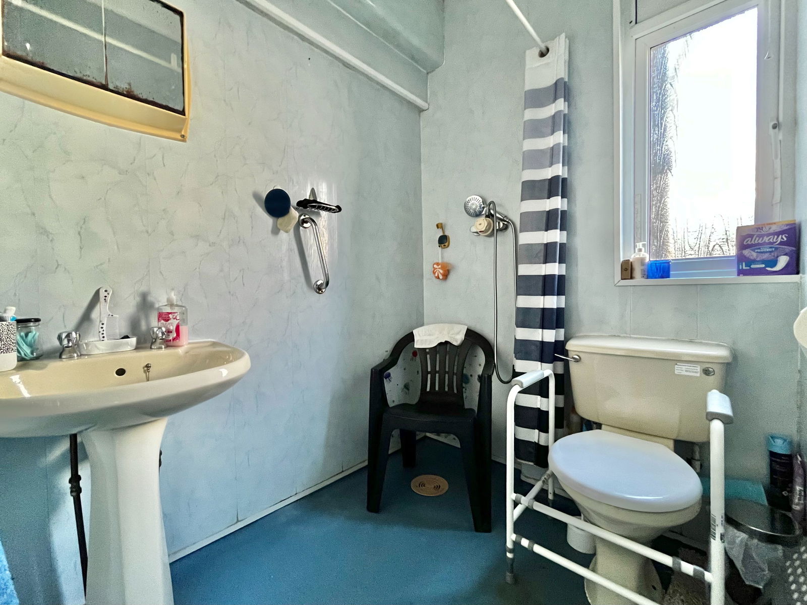 SHOWER ROOM A fully fitted wet room boasting a low level flush WC, a pedestal wash hand basin and a walk in shower area with overhead shower attachments above. uPVC obscure double glazed obscure window and a gas central heated radiator.