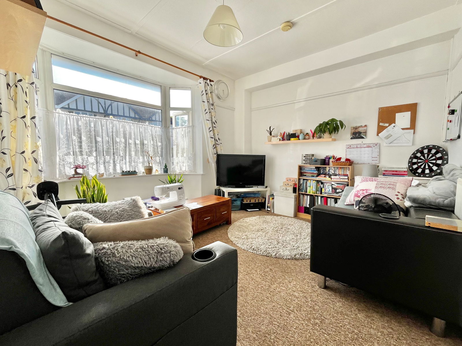 LIVING ROOM - 3.81m x 3.73m (12'6" x 12'2") A spacious living room boasting space for ample furniture. TV and internet points, uPVC double glazed bay windows to the front aspect of the property and a gas central heated radiator as well as a cupboard housing the electric metre and fuse box.