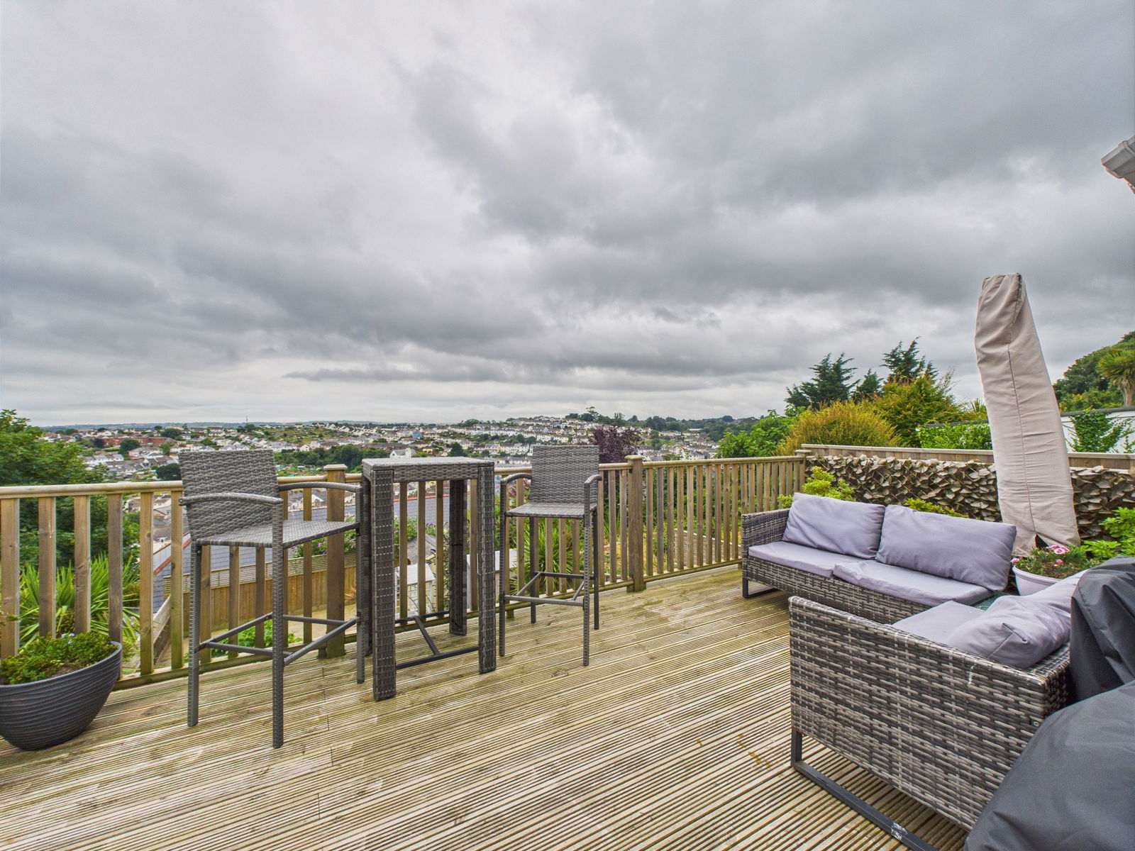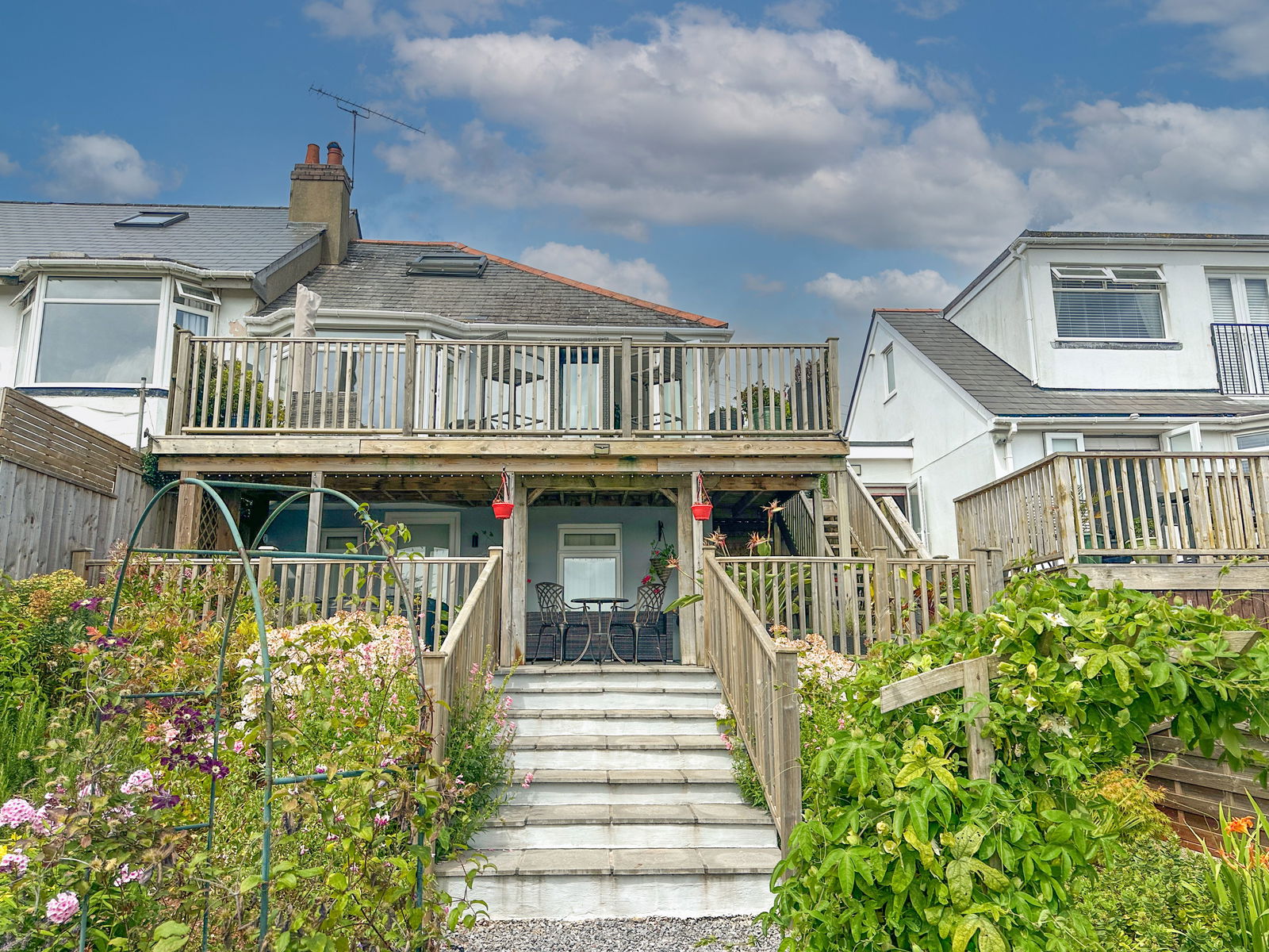 OUTSIDE SPACE The south east facing rear garden is a true sun trap and a highlight of this home. A further sun deck with sea views accessed from the lounge/diner is perfect for outdoor dining or simply relaxing while soaking in the remarkable coastal views. Steps lead down to beautifully landscaped gardens featuring a generous patio and a variety of mature plants and shrubs.