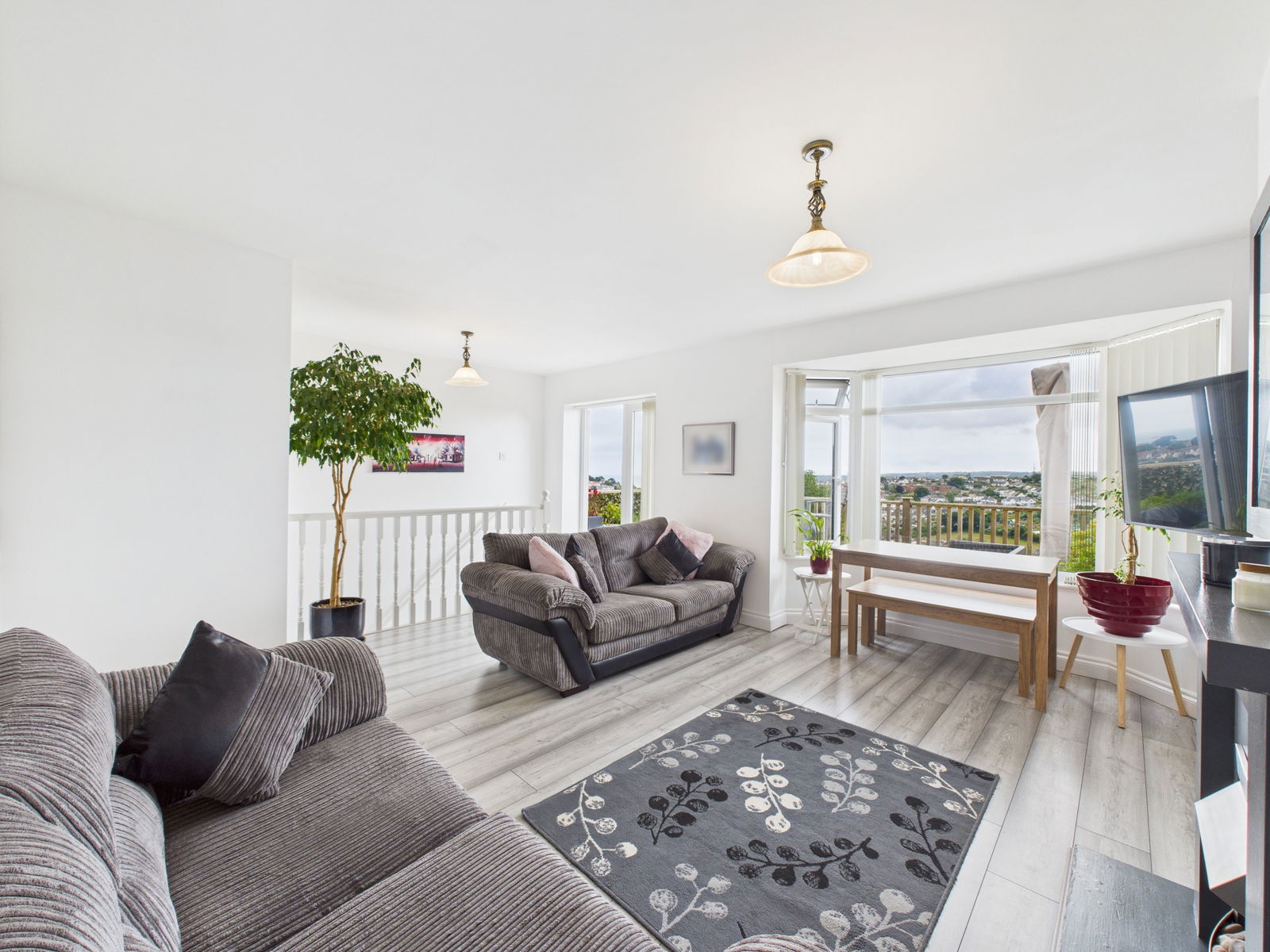 LOUNGE/DINER Bathed in natural light this spacious open plan lounge/diner offers breathtaking panoramic views across the bay. Generously sized for a variety of furnishings, it also features a charming electric fireplace, TV point and French doors opening onto a private decked terrace. A stairway leads down to the lower ground floor as well as a gas central heated radiator.