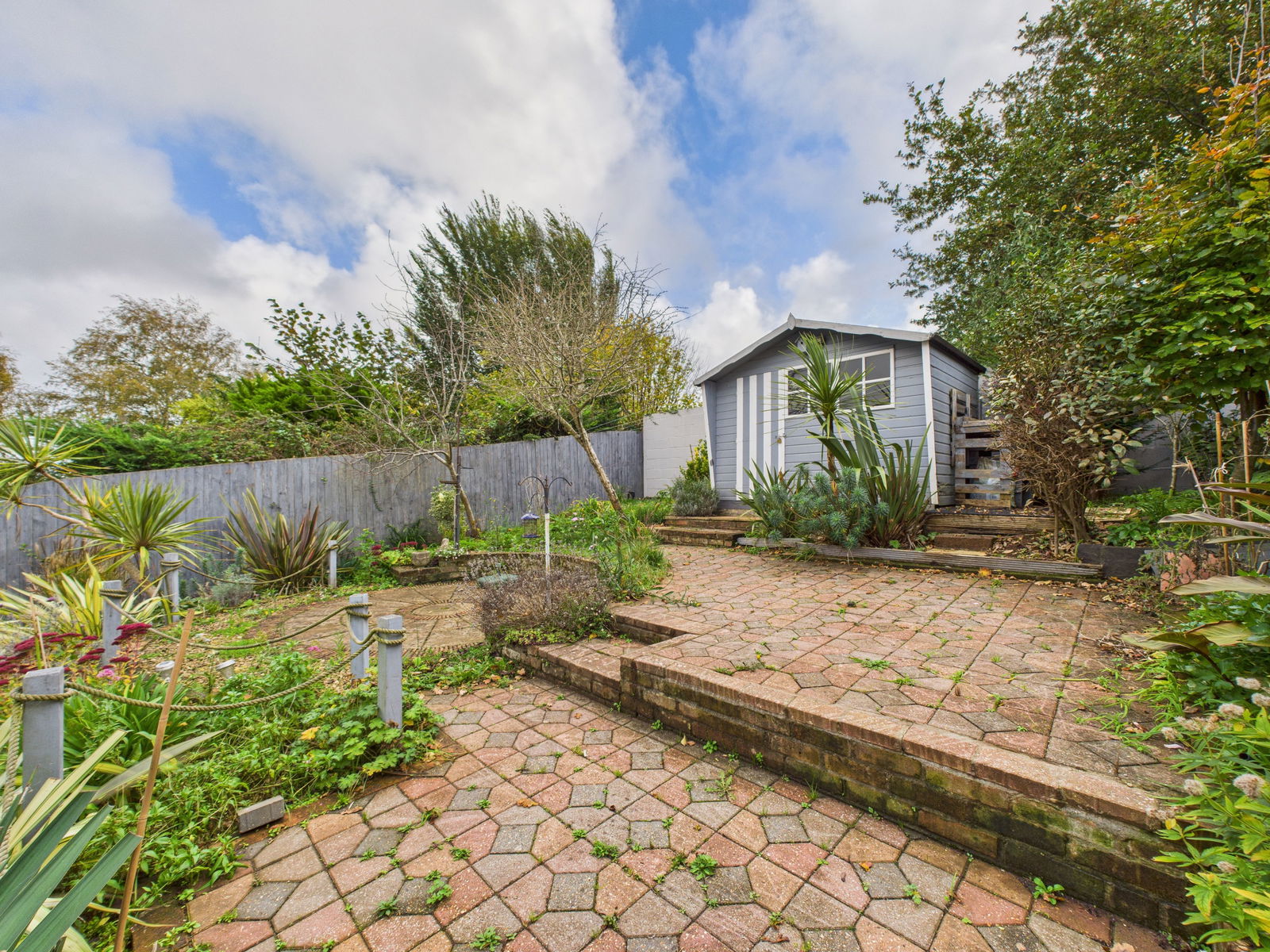 OUTSIDE A beautifully landscaped, sunny south facing and enclosed rear garden with a water feature. The garden has been designed for ease of maintenance with a variety of mature shrubs and plants to enjoy an array of colour throughout the year. The gardens boast a sizeable patio area accessed directly from the living room and conservatory, perfect for outdoor dining and entertaining, steps then lead up to a rockery section laid to pebble stones with a selection of shrubs and a palm tree. Steps finally lead up to the top section that enjoys a large patio area to follow the sun throughout the day. There is a sizable shed that has electrical points.