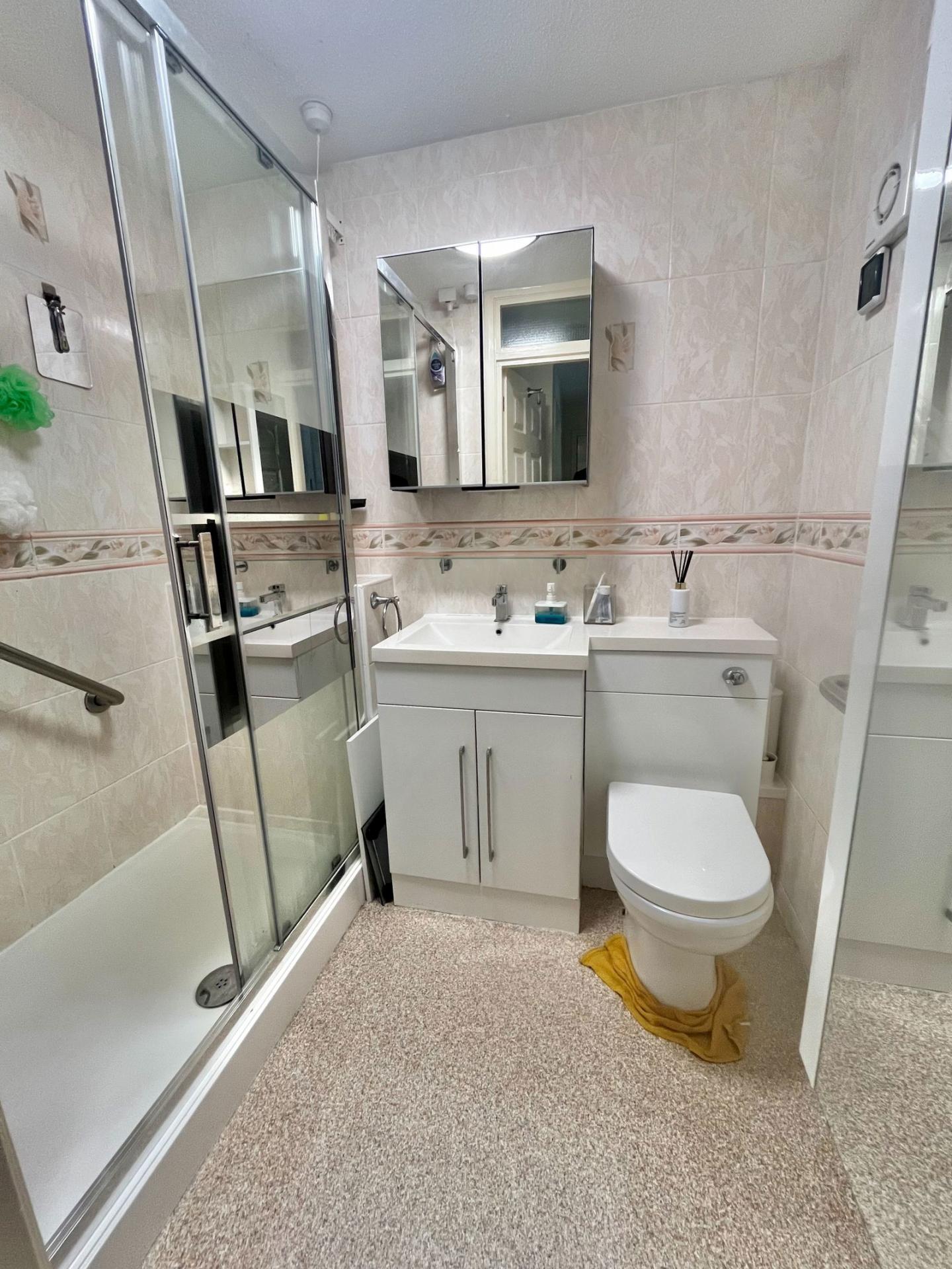 BATHROOM Refitted suite with feature wash basin and close coupled WC. Double shower cubicle with electric shower, extractor fan and fully tiled.