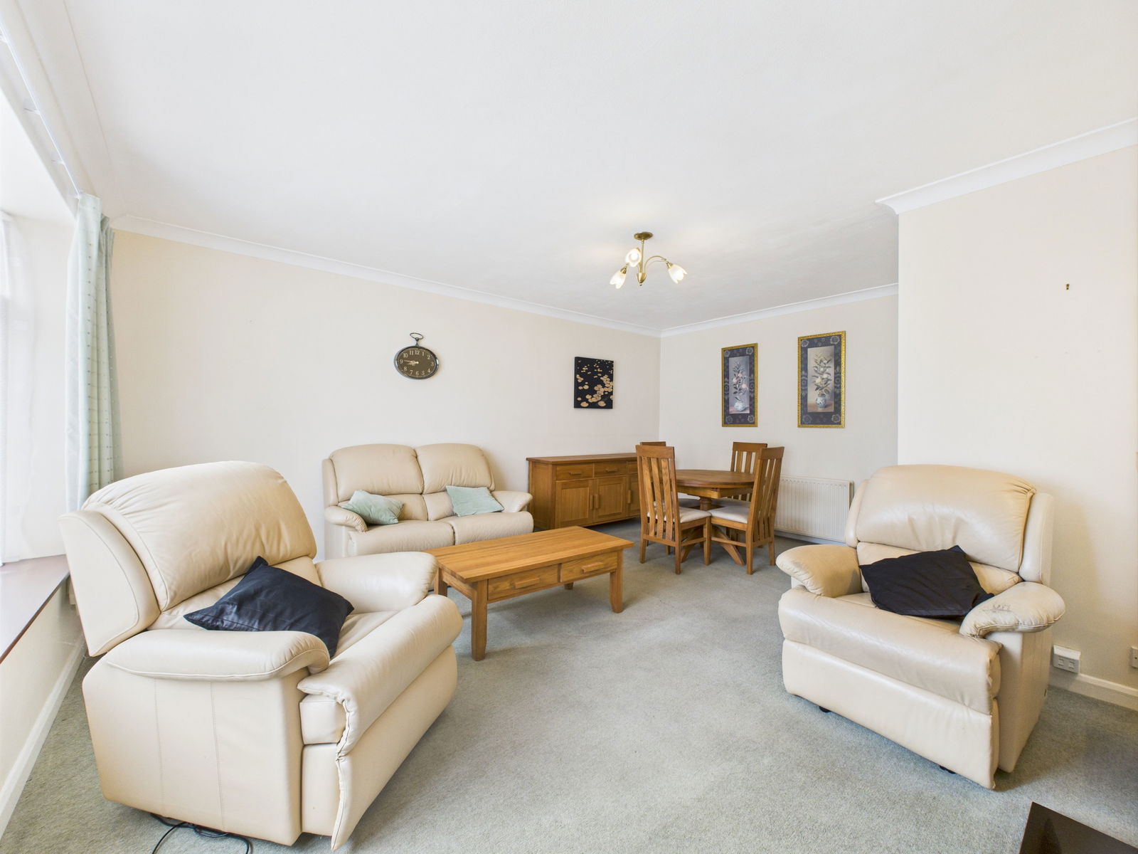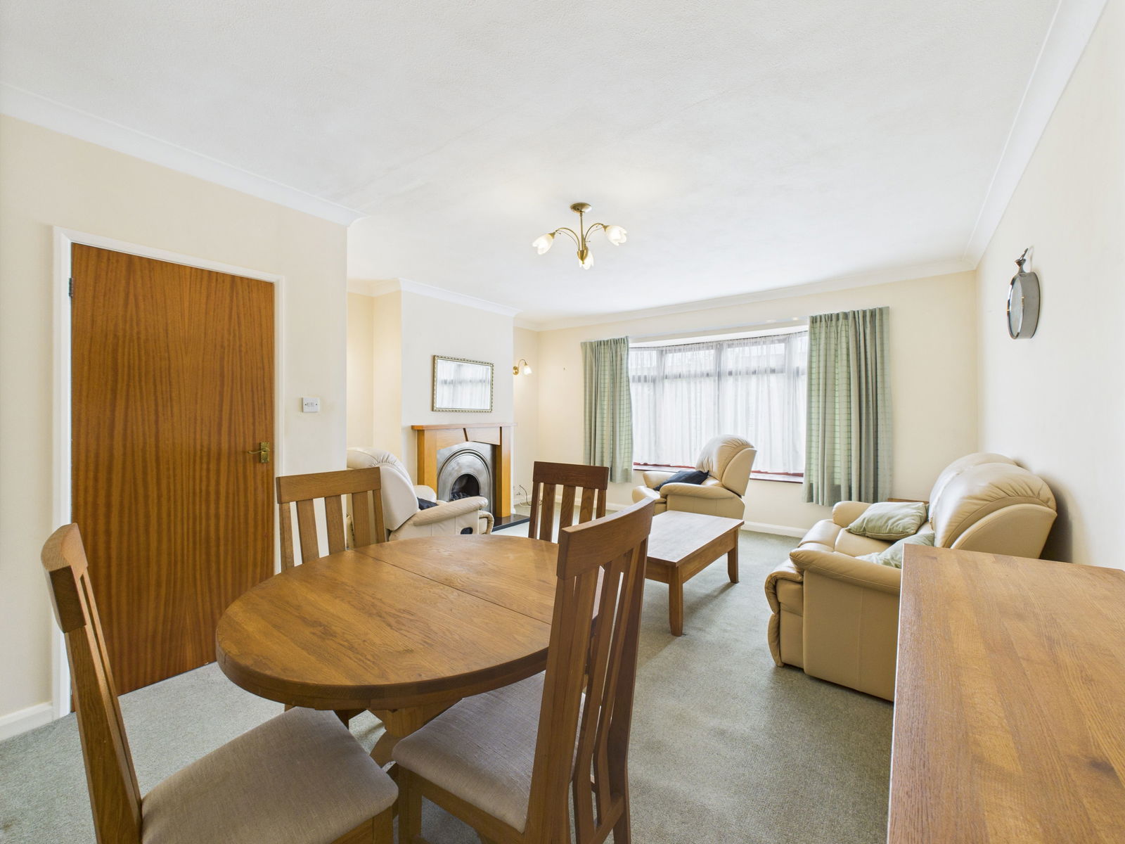 LOUNGE / DINER This bright and generously proportioned lounge/diner enjoys views over the front gardens. With ample space for both living and dining furniture, the room is enhanced by a gas fireplace, TV and internet points, a large double glazed bay window and a gas central heated radiator.