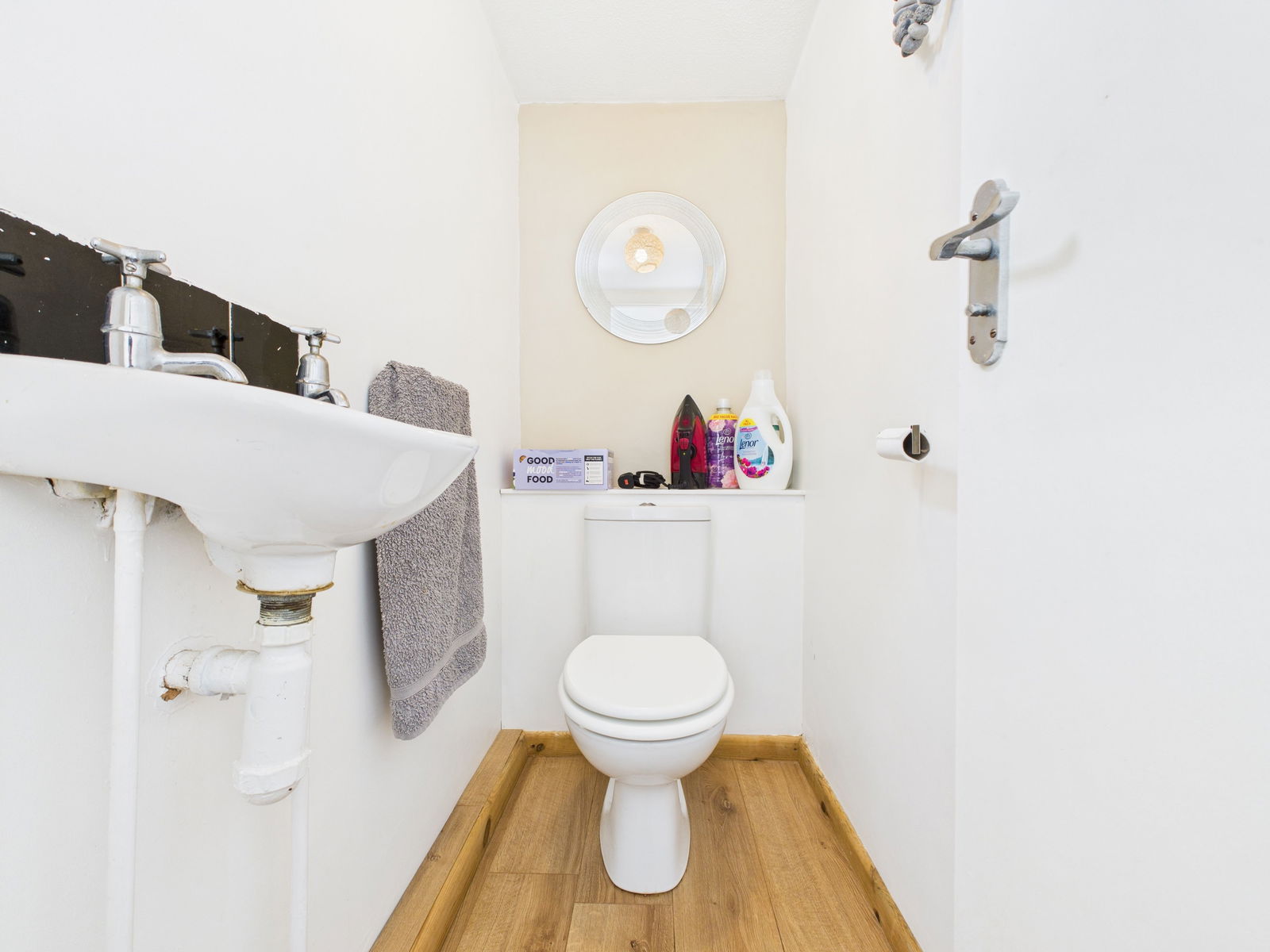 CLOAKROOM A useful downstairs cloakroom boasting a low level flush WC and a wall mounted wash hand basin, uPVC obscure double glazed window.