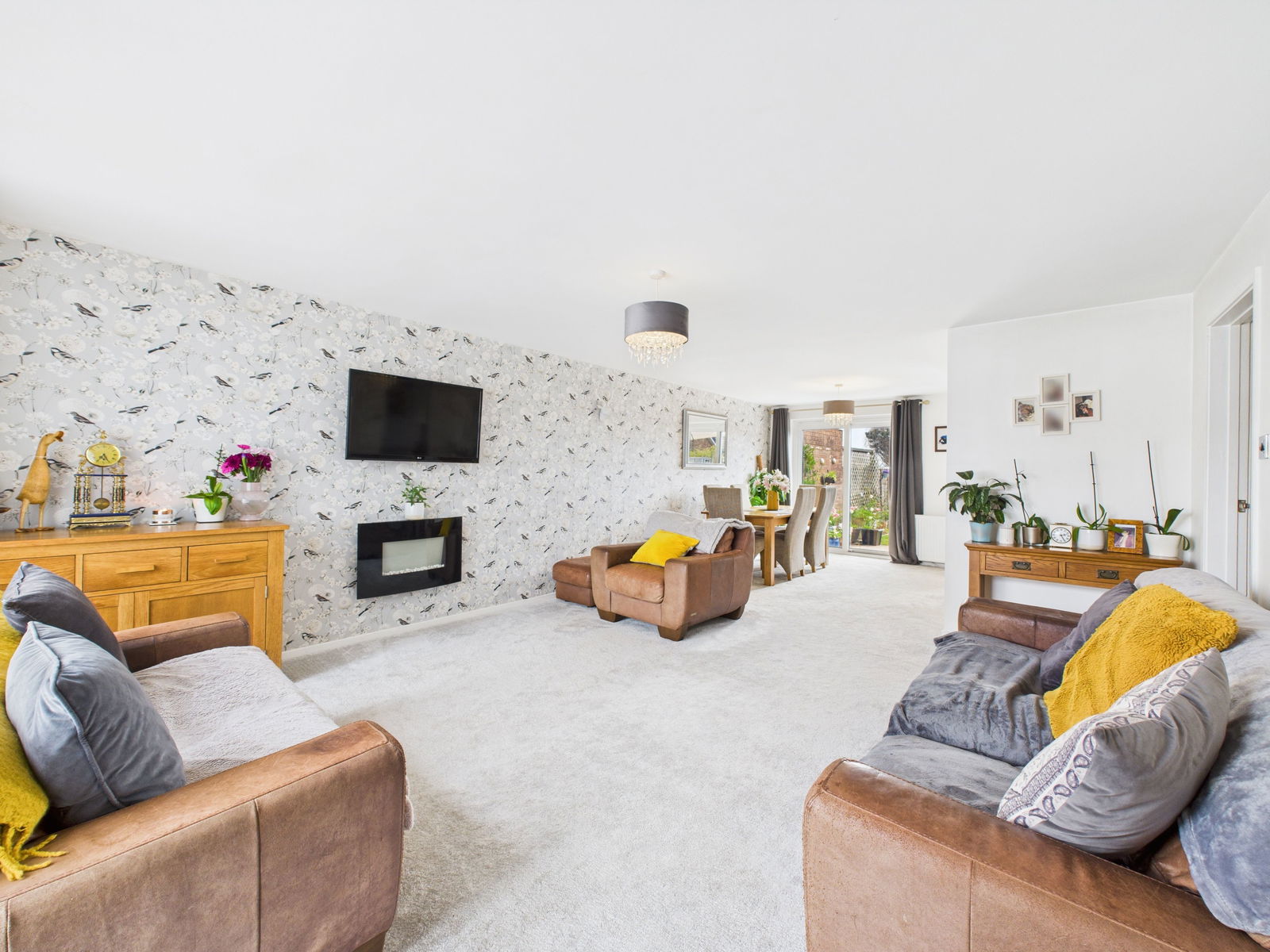 LOUNGE/DINER A bright and spacious open lounge/Diner perfect for entertaining, tv and internet points, a feature electric fireplace, double aspect uPVC double glazing with floor to ceiling windows to the front and sliding patio doors to the rear leading out to the gardens. Two gas central heated radiators.