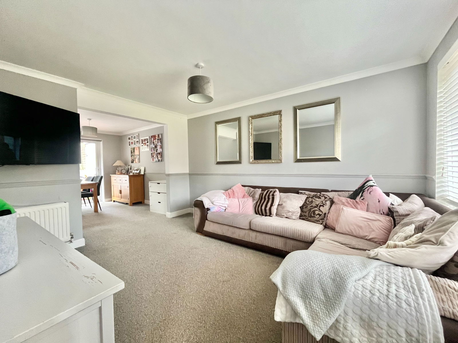 LIVING ROOM - 3.86m x 3.22m (12'7" x 10'6") A wonderfully large living room that opens into the dining area perfect for entertaining. The living room boasts space for a vast amount of furniture, tv and internet points, uPVC double glazed windows overlooking the well-manicured front gardens and a gas central heated radiator.