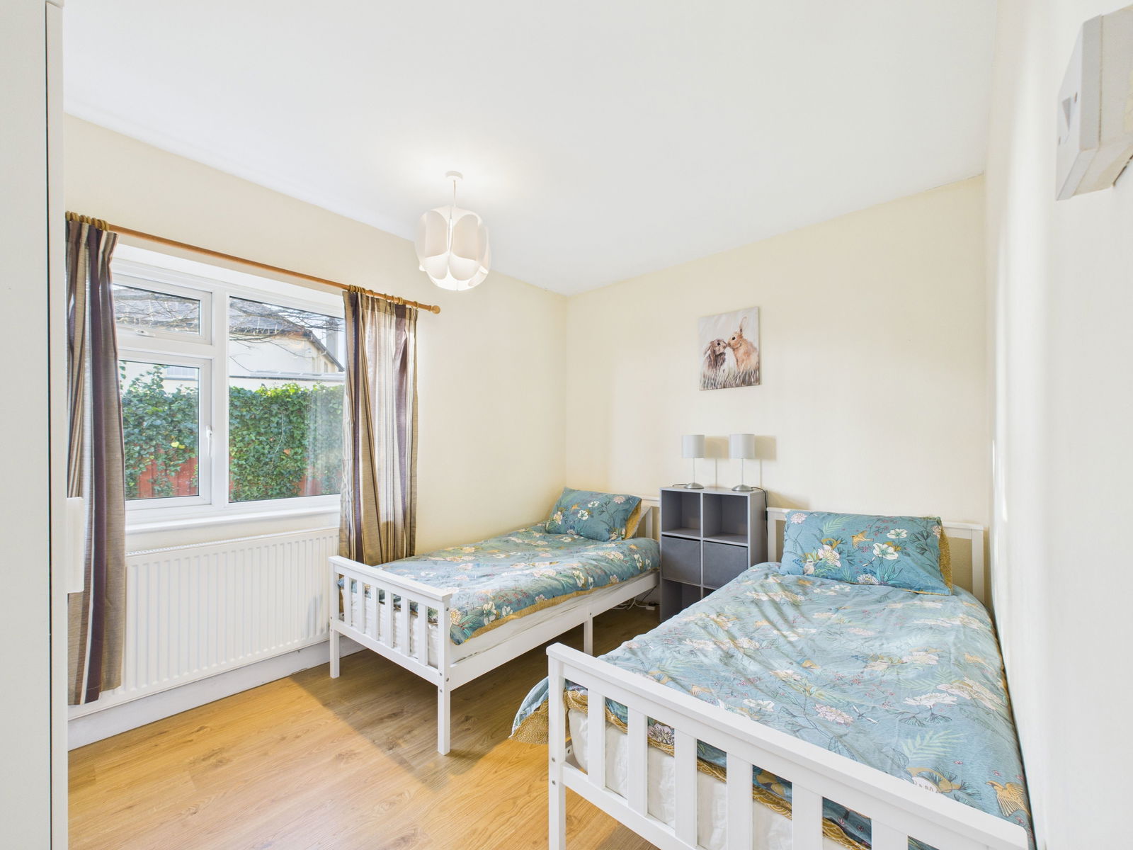 BEDROOM TWO Side-facing window, radiator and power points.