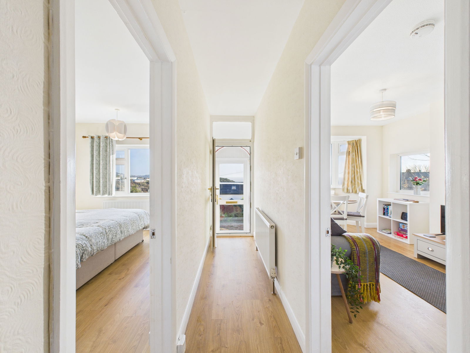 ENTRANCE HALLWAY Radiator, storage cupboard and doors to all rooms.