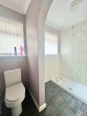 BATHROOM - 2.51m x 1.88m (8'2" x 6'2") White suite comprising panelled bath with shower over and glazed shower screen. Pedestal wash hand basin high level WC. shaver point. Tiling. uPVC double glazed windows. Radiator.