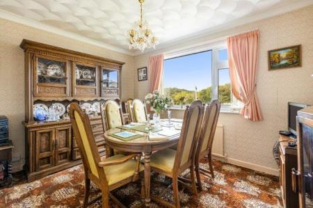 LOUNGE/DINER - 6.64m x 3.64m (21'9" x 11'11") Marble effect fireplace surround and inset coal effect living flame gas fire. Double aspect uPVC patio doors enjoying delightful countryside views with sea glimpses. Wall lights
